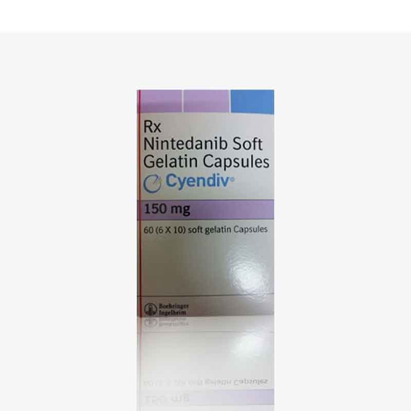 Cyendiv Nintedanib is a drug utilized for the treatment of idiopathic pneumonic fibrosis (IPF) and alongside different meds for a few sorts of non-little cell lung malignancy. Cyendiv is a doctor prescribed medication and ought to be utilized under legitimate medicinal direction and advice. Cyendiv 150mg Soft Gelatin Capsule is utilized in the treatment of idiopathic aspiratory fibrosis and non-little cell lung malignant growth.